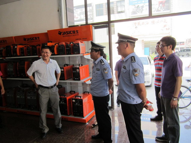 民警認(rèn)真對(duì)商戶(hù)提出的安全生產(chǎn)問(wèn)題進(jìn)行解答