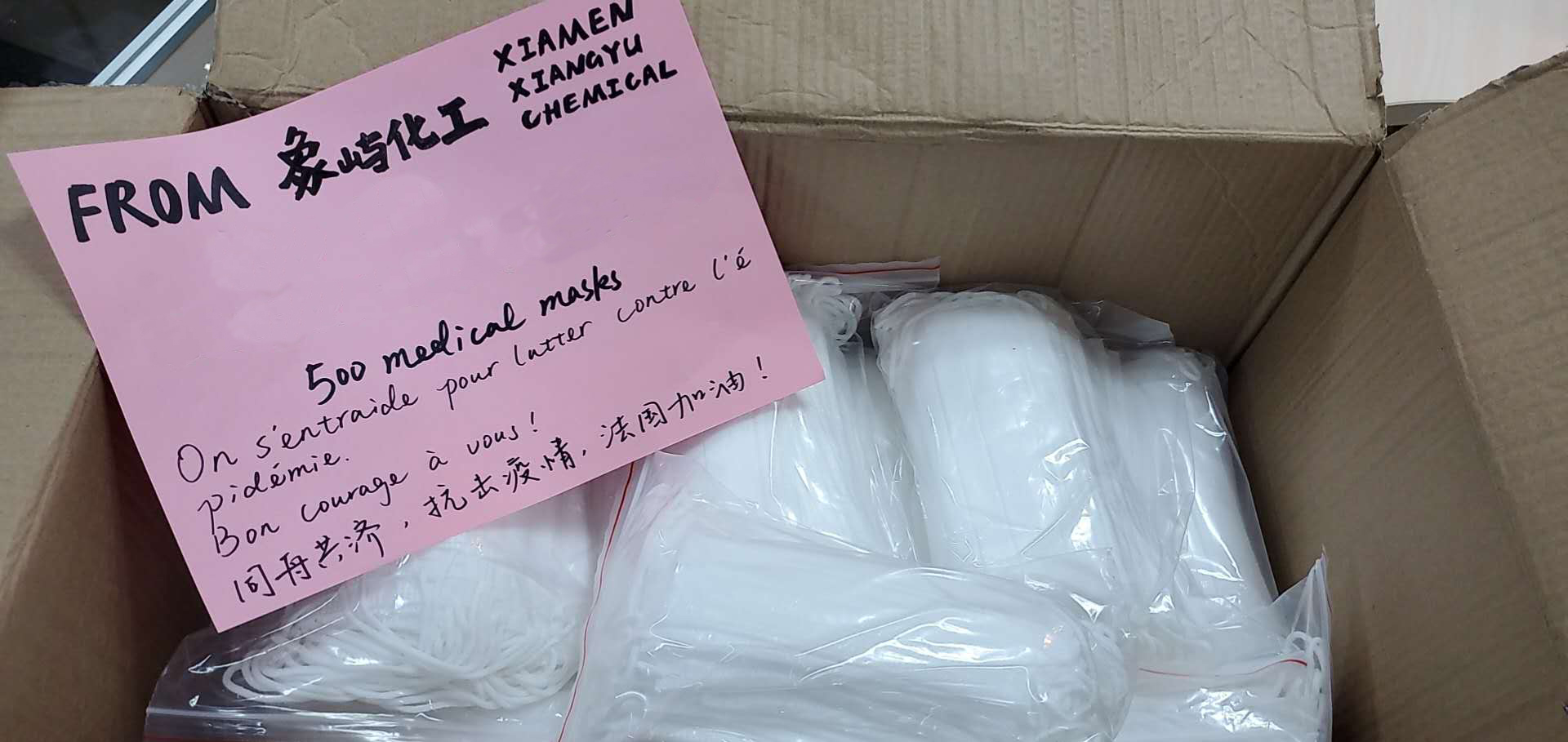 象嶼化工寄給法國友商的口罩