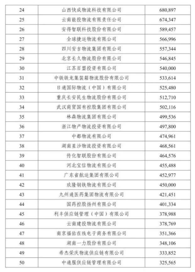 象嶼股份蟬聯(lián)第二!中國物流企業(yè)50強榜單出爐