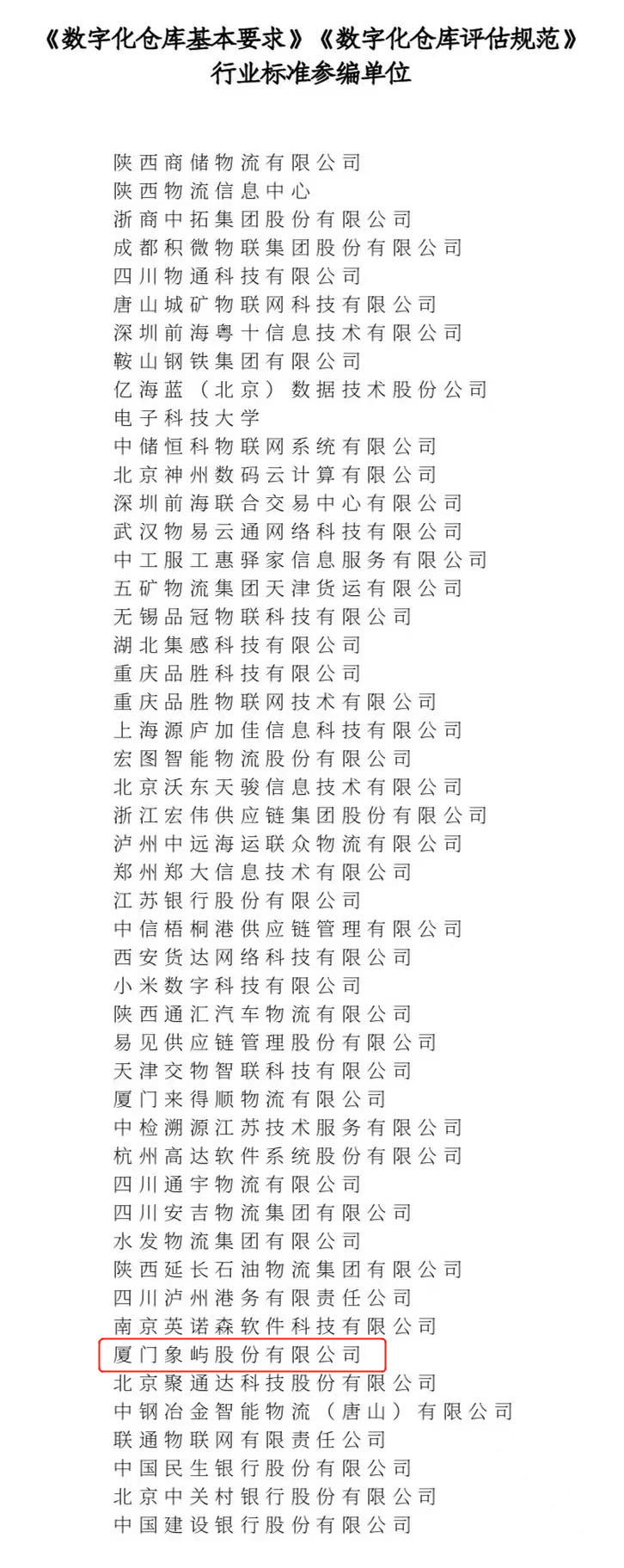 數(shù)智引領(lǐng)!象嶼股份參與編寫的數(shù)字化倉庫行業(yè)標(biāo)準(zhǔn)獲國家發(fā)改委批準(zhǔn)發(fā)布